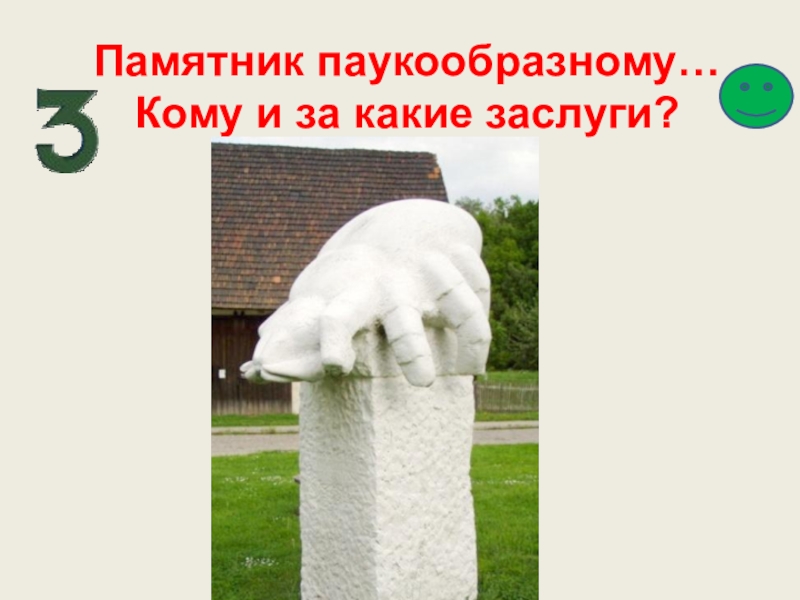 Слайд 17Памятник паукообразному… Кому и за какие заслуги?