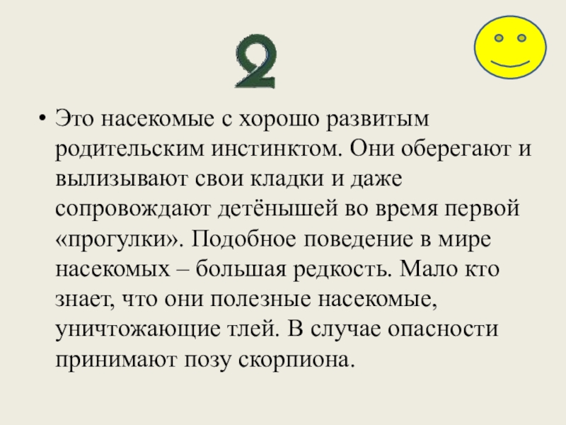 Слайд 26Это насекомые с хорошо развитым родительским инстинктом. Они оберегают и вылизывают