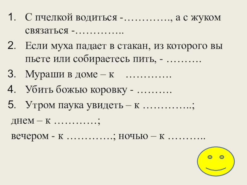 Слайд 73С пчелкой водиться -…………., а с жуком связаться -…………..