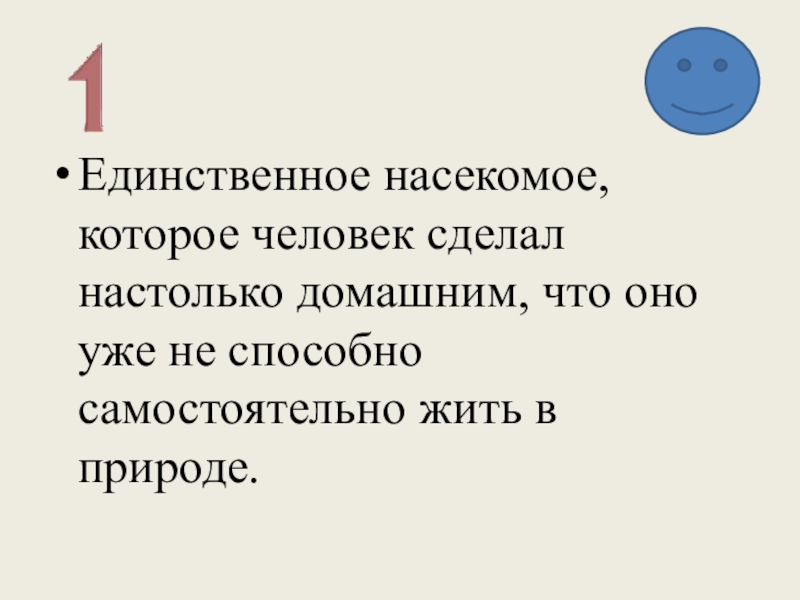 Слайд 35Единственное насекомое, которое человек сделал настолько домашним, что оно уже не