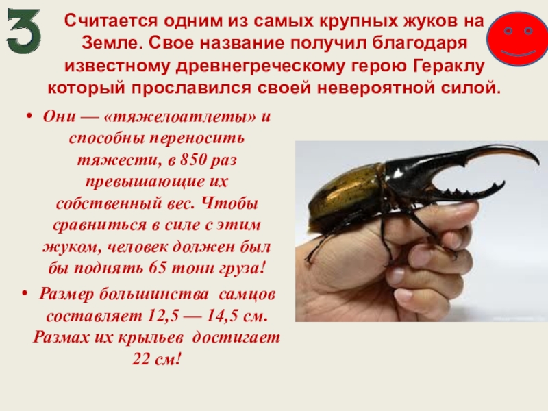 Слайд 65Считается одним из самых крупных жуков на Земле. Свое название получил