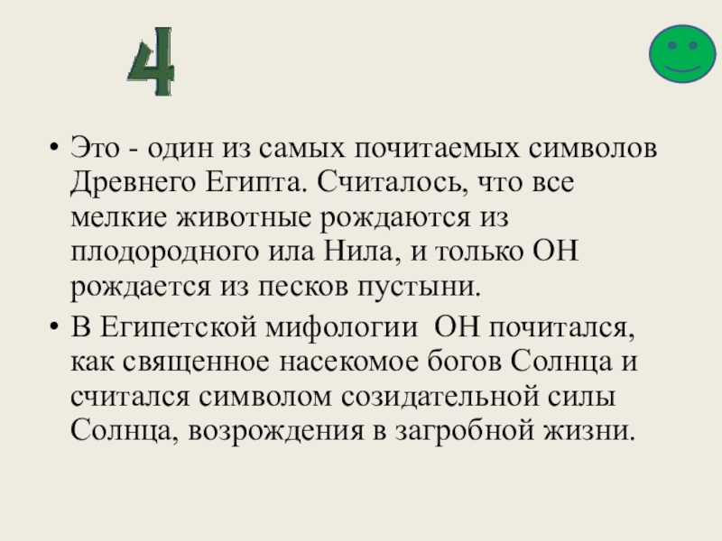 Слайд 18Это - один из самых почитаемых символов Древнего Египта. Считалось, что