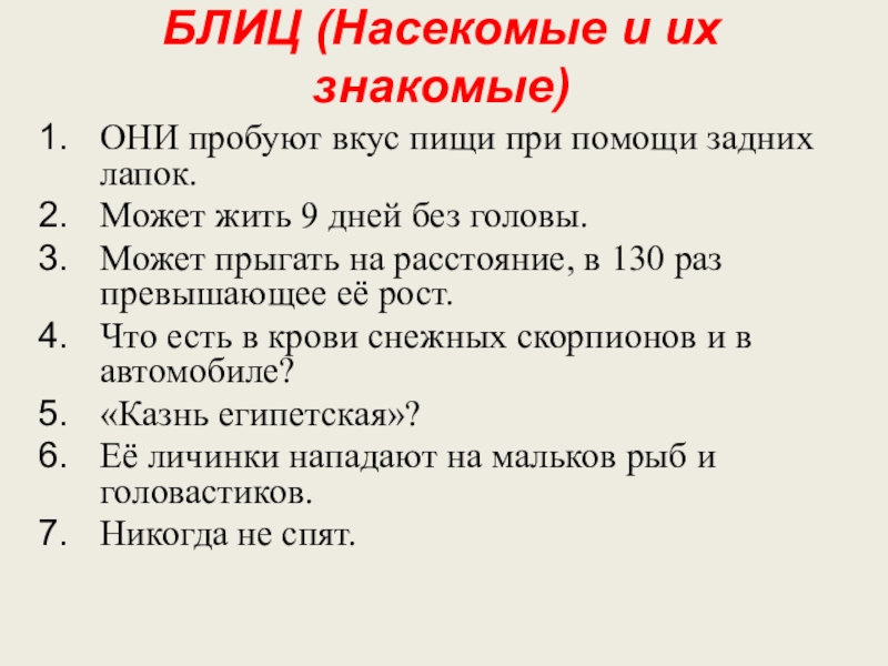 Слайд 80БЛИЦ (Насекомые и их знакомые)