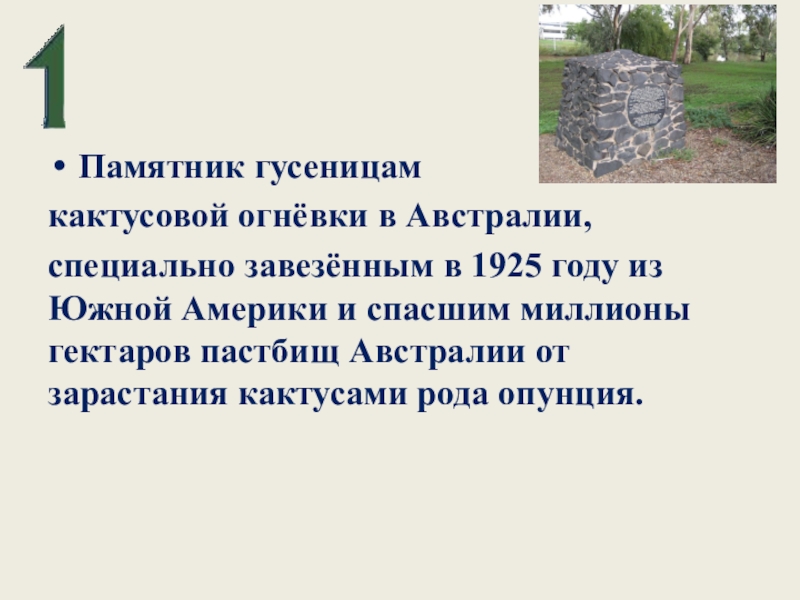 Южной Америки и спасшим миллионы гектаров пастбищ Австралии от зарастания кактусами рода опунция.