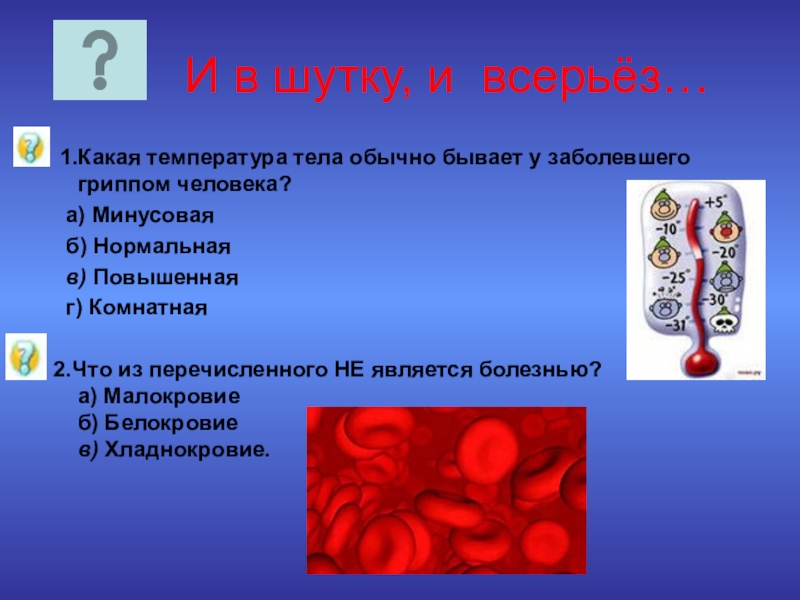 мм3 крови содержится 5 млн. эритроцитов, 6 - 8 тыс. лейкоцитов, 200 – 300 тромбоцитов.