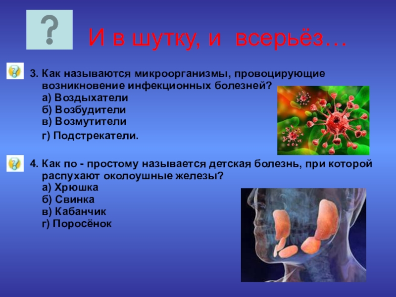 4. Как по - простому называется детская болезнь, при которой распухают околоушные железы?