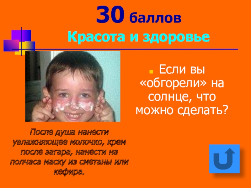 После душа нанести увлажняющее молочко, крем после загара, нанести на полчаса маску из сметаны или кефира.