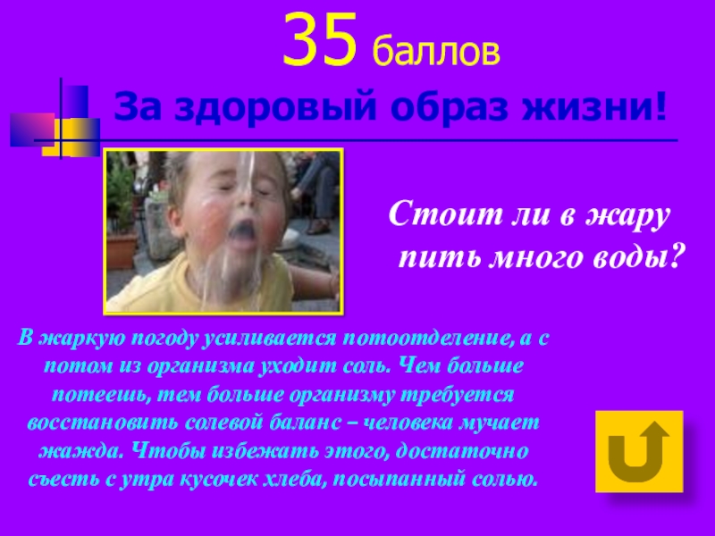 В жаркую погоду усиливается потоотделение, а с потом из организма уходит соль. Чем больше потеешь, тем больше организму требуется восстановить солевой баланс – человека мучает жажда. Чтобы избежать этого, достаточно съесть с утра кусочек хлеба, посыпанный солью.