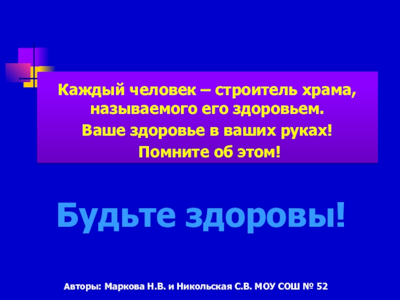 Авторы: Маркова Н.В. и Никольская С.В. МОУ СОШ № 52