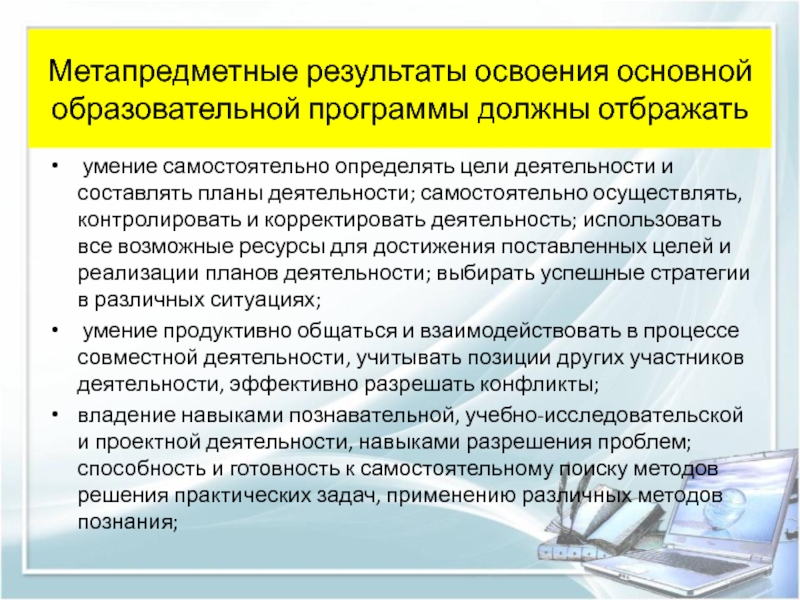 Слайд 15Метапредметные результаты освоения основной образовательной программы должны отбражать