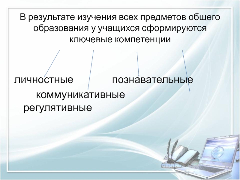 Слайд 4В результате изучения всех предметов общего образования у учащихся сформируются ключевые