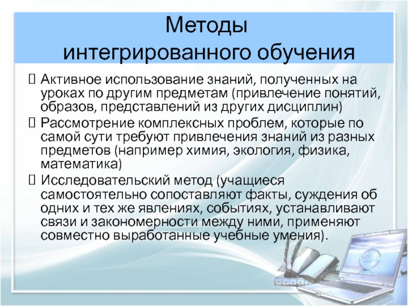 Рассмотрение комплексных проблем, которые по самой сути требуют привлечения знаний из разных предметов (например химия, экология, физика, математика)