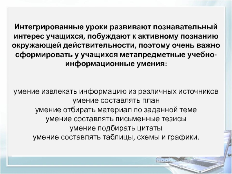 Слайд 13Интегрированные уроки развивают познавательный интерес учащихся, побуждают к активному познанию окружающей