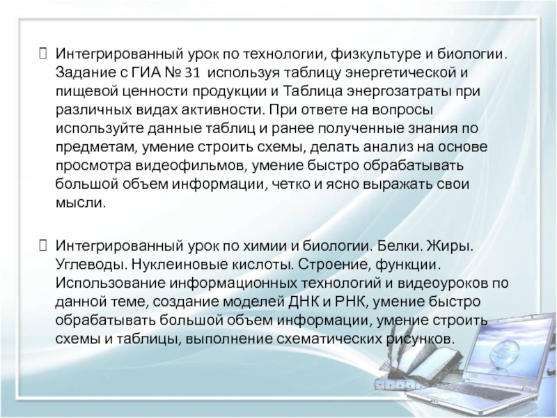 Интегрированный урок по технологии, физкультуре и биологии. Задание с ГИА