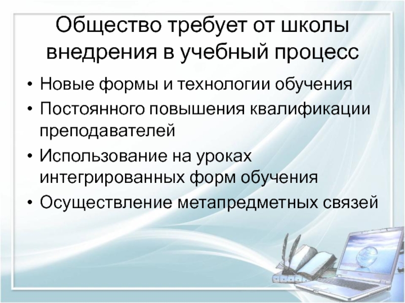 Слайд 2Общество требует от школы внедрения в учебный процесс