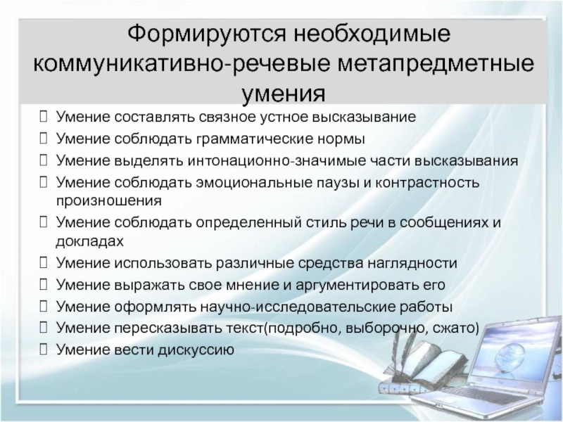 Слайд 14 Формируются необходимые коммуникативно-речевые метапредметные умения