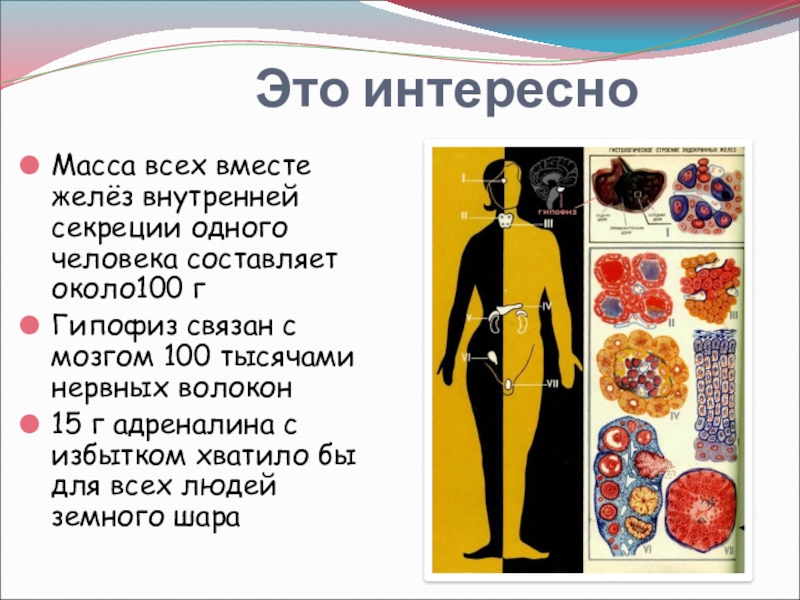Масса всех вместе желёз внутренней секреции одного человека составляет около100