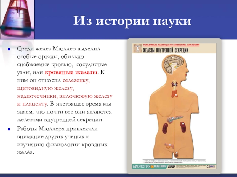 органов человека он заметил особые образования, получившие название желез. Их функция на протяжении почти двух столетий оставалось загадочной.