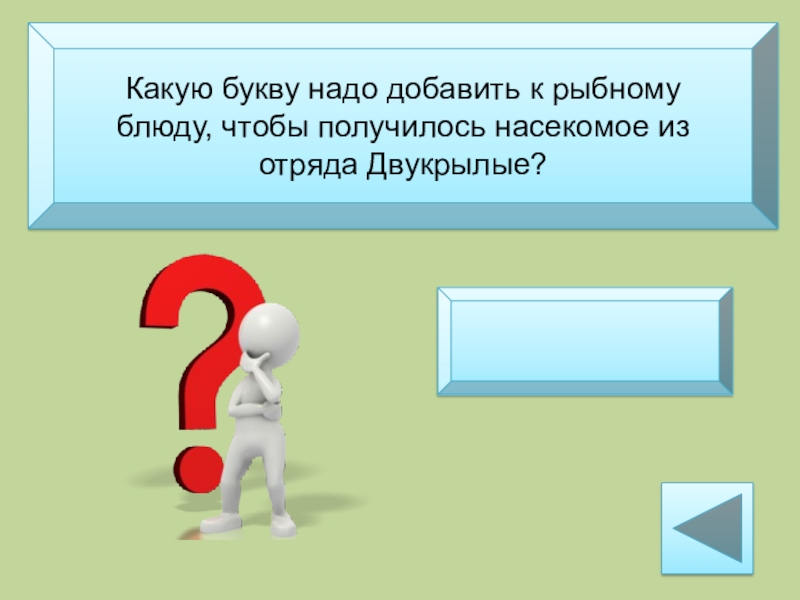 Какую букву надо добавить к рыбному блюду, чтобы получилось насекомое изотряда Двукрылые?уха - муха