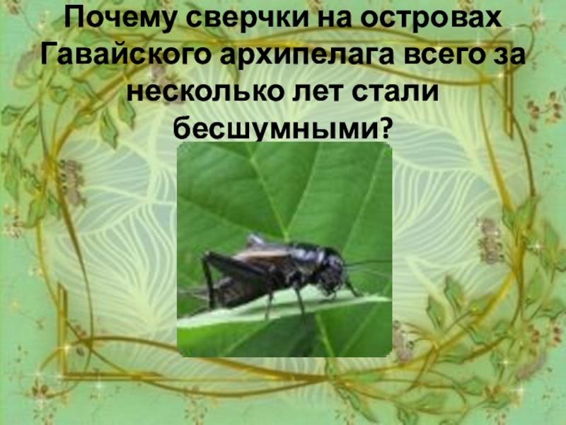 Слайд 2 Почему сверчки на островах Гавайского архипелага всего за несколько лет стали