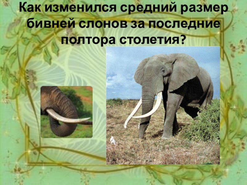 Слайд 3Как изменился средний размер бивней слонов за последние полтора столетия?