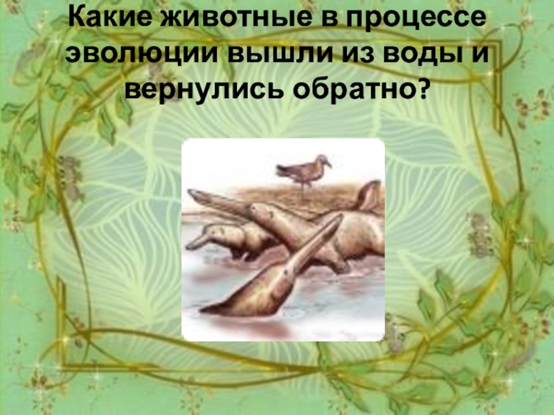 Слайд 8Какие животные в процессе эволюции вышли из воды и вернулись обратно?