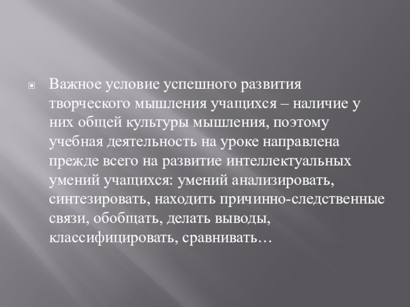 Важное условие успешного развития творческого мышления учащихся – наличие у них