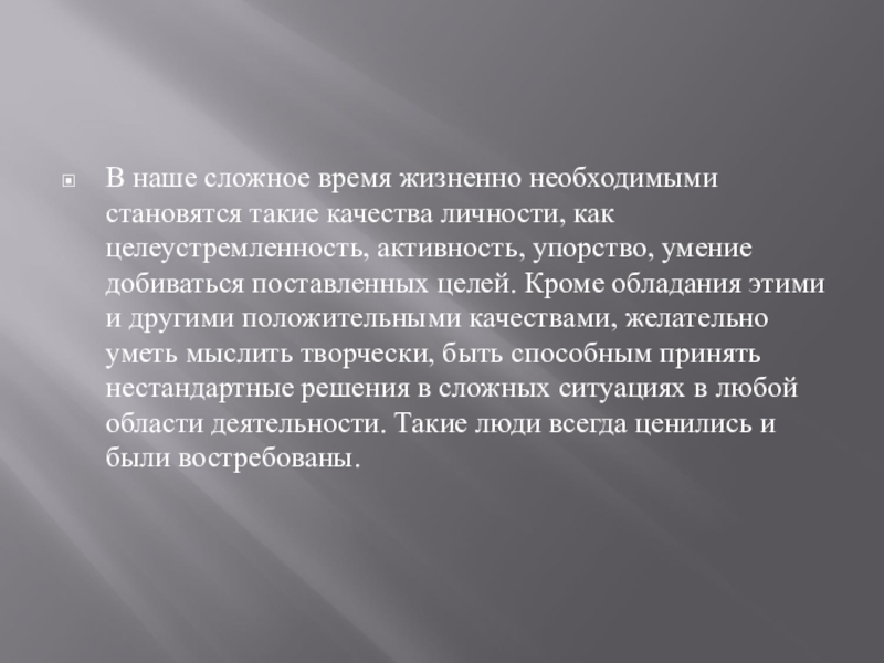 В наше сложное время жизненно необходимыми становятся такие качества личности, как