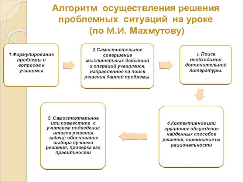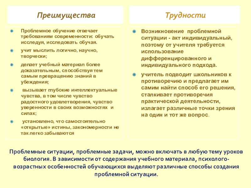 Возникновение проблемной ситуации - акт индивидуальный, поэтому от учителя требуется использование дифференцированного и индивидуального подхода.