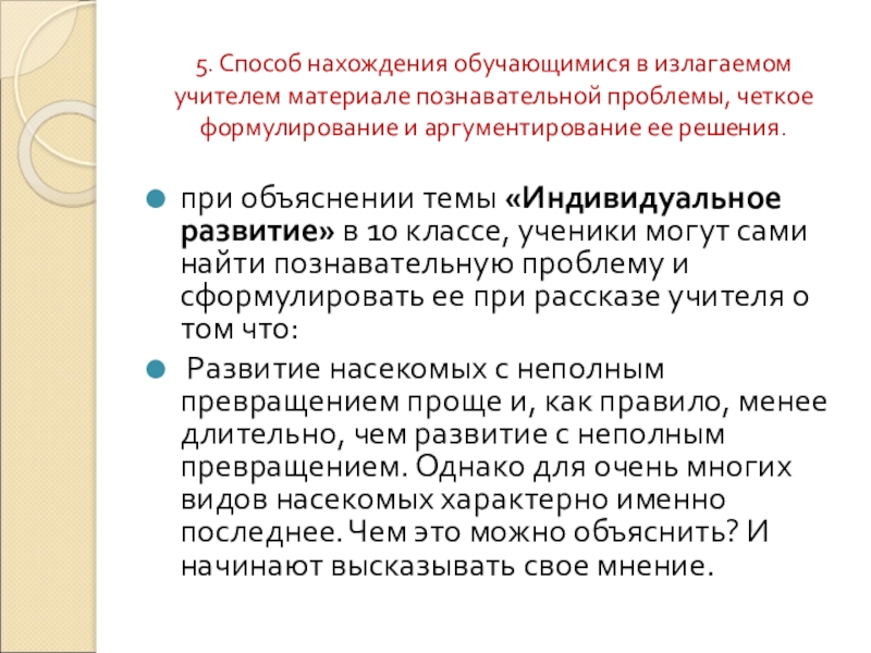 при объяснении темы «Индивидуальное развитие» в 10 классе, ученики могут сами найти познавательную проблему и сформулировать ее при рассказе учителя о том что: