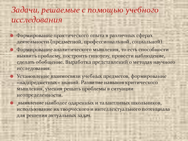 Задачи, решаемые с помощью учебного исследования