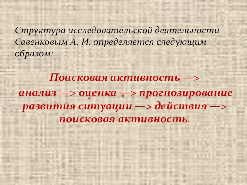 Структура исследовательской деятельности Савенковым А. И. определяется следующим образом: