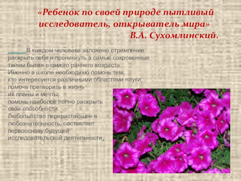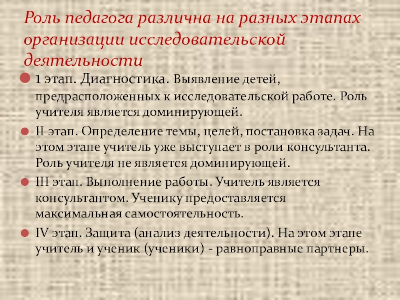исследовательской деятельности.