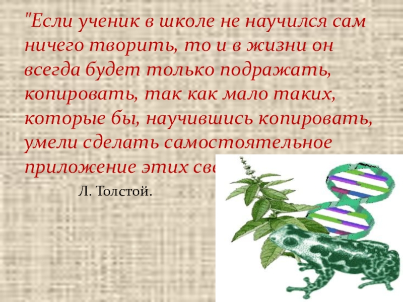 "Если ученик в школе не научился сам ничего творить, то и в жизни он всегда будет только подражать, копировать, так как мало таких, которые бы, научившись копировать, умели сделать самостоятельное приложение этих сведений"