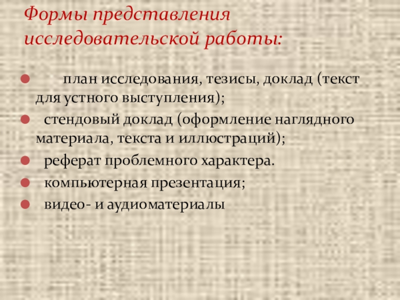 Формы представления исследовательской работы: