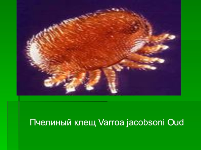 Слайд 8Пчелиный клещ Varroa jacobsoni Oud