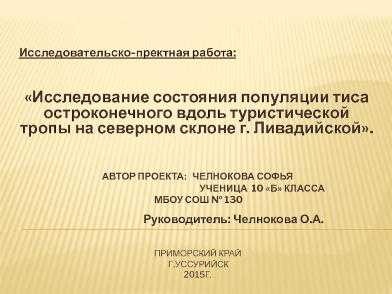 «Исследование состояния популяции тиса остроконечного вдоль туристической тропы на северном склоне г. Ливадийской».