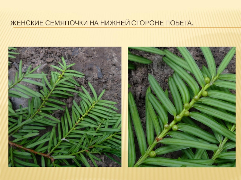 Хвоя плоская, мягкая, остроконечная, длина 1.2 – 2 см, ширина 2 – 2,5 мм,, сидит одиночно, держится 4-6 лет.