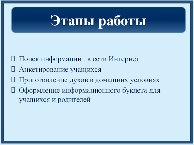 Этапы работы
