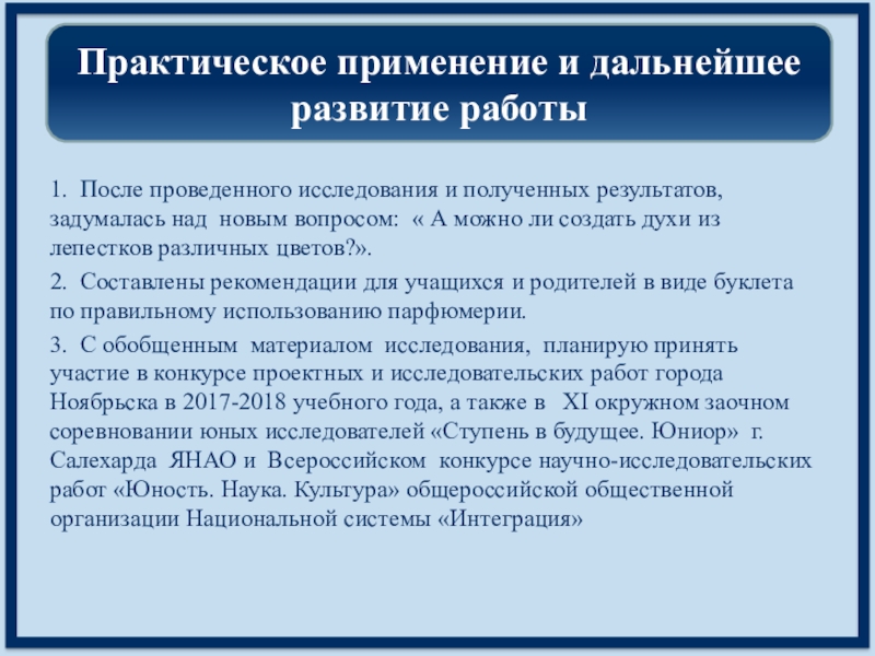 Практическое применение и дальнейшее развитие работы