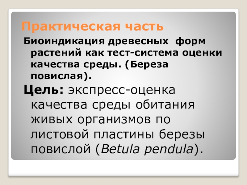 Цель: экспресс-оценка качества среды обитания живых организмов по листовой пластины березы повислой (Betula pendula).