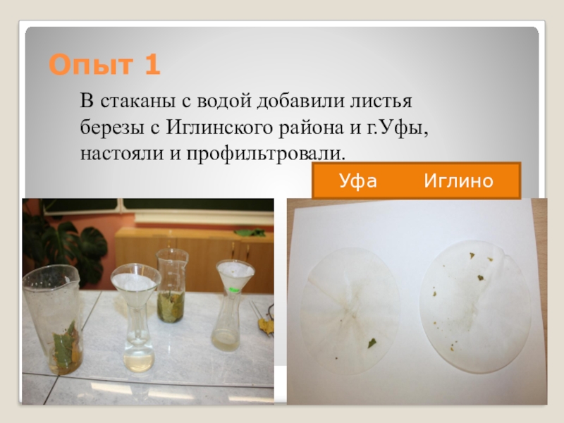 По размерам листьев и расчетам определили загрязнения атмосферы в разных районах. Сравнивали Иглинский район и город Уфы.