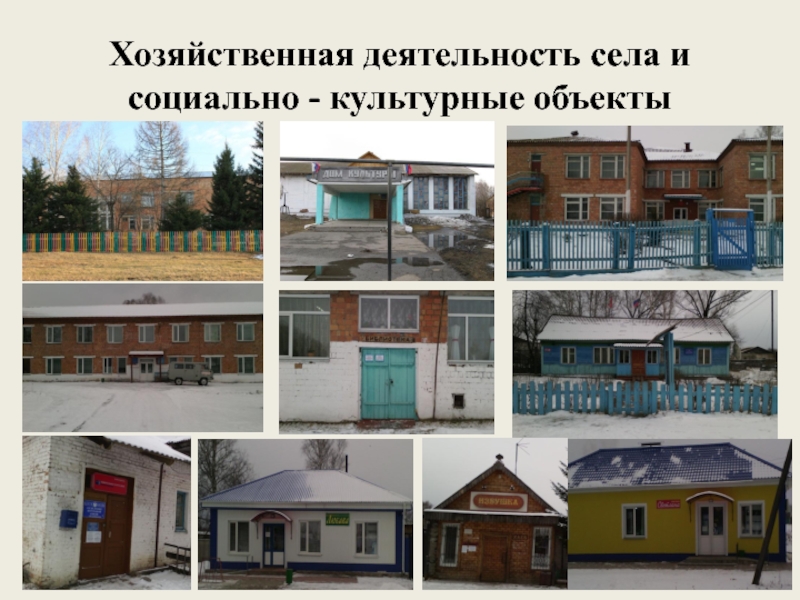 Слайд 13Хозяйственная деятельность села и социально - культурные объекты