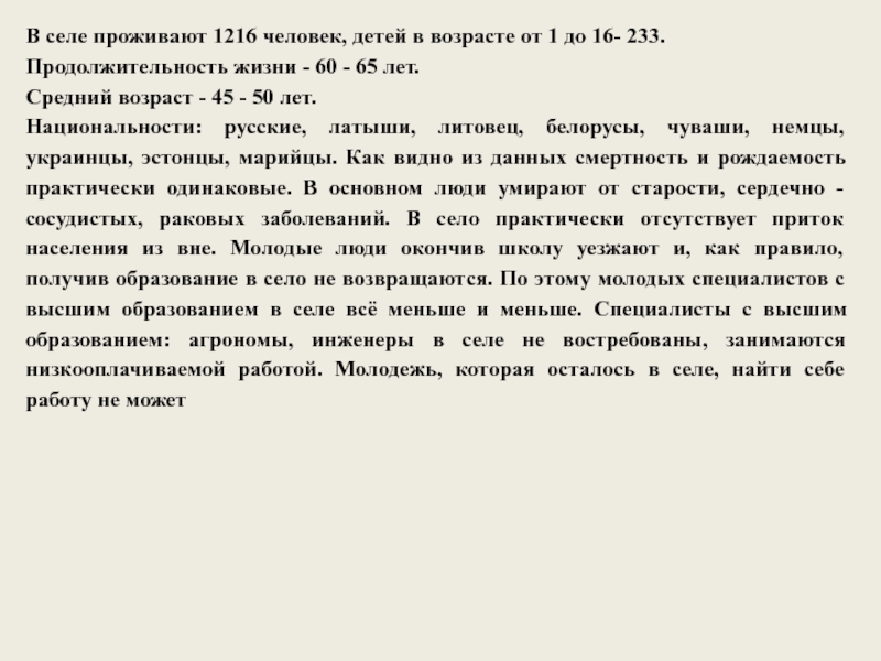Слайд 15В селе проживают 1216 человек, детей в возрасте от 1 до