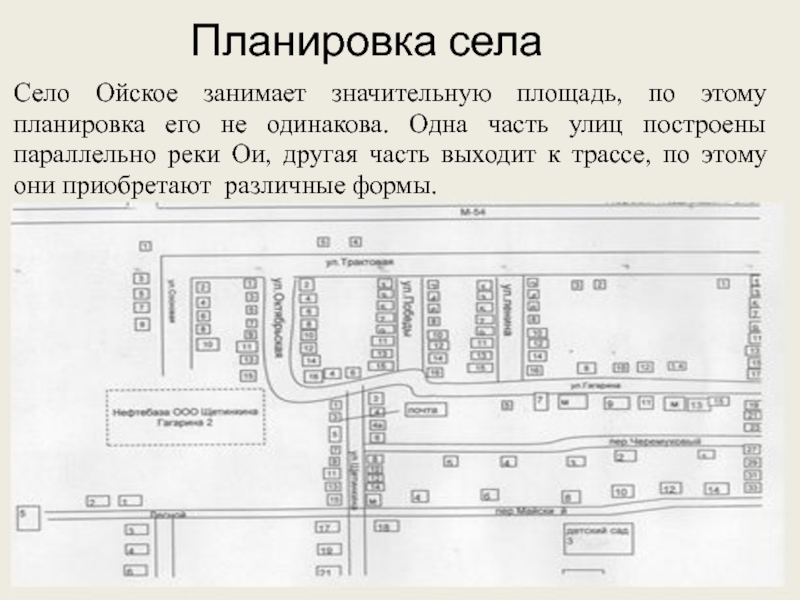 Село Ойское занимает значительную площадь, по этому планировка его не