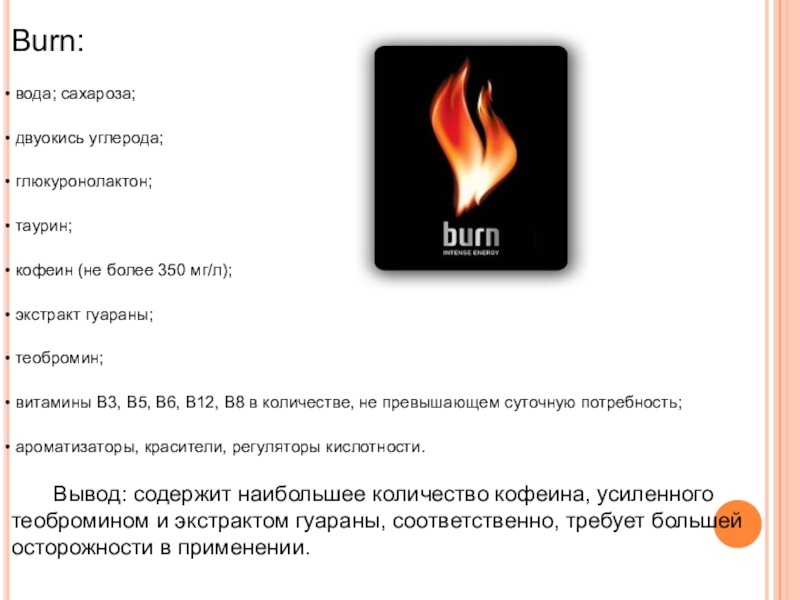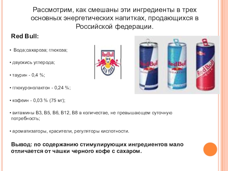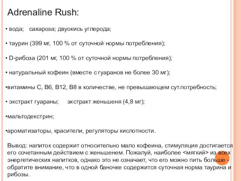 Вывод: по содержанию стимулирующих ингредиентов мало отличается от чашки черного кофе с сахаром.