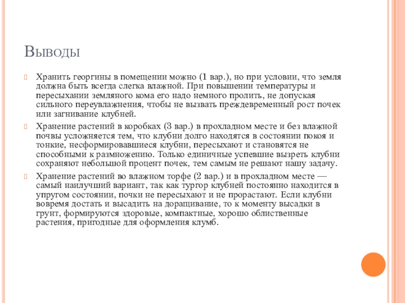 Выводы Хранить георгины в помещении можно (1 вар.), но при условии, что земля должна быть всегда слегка