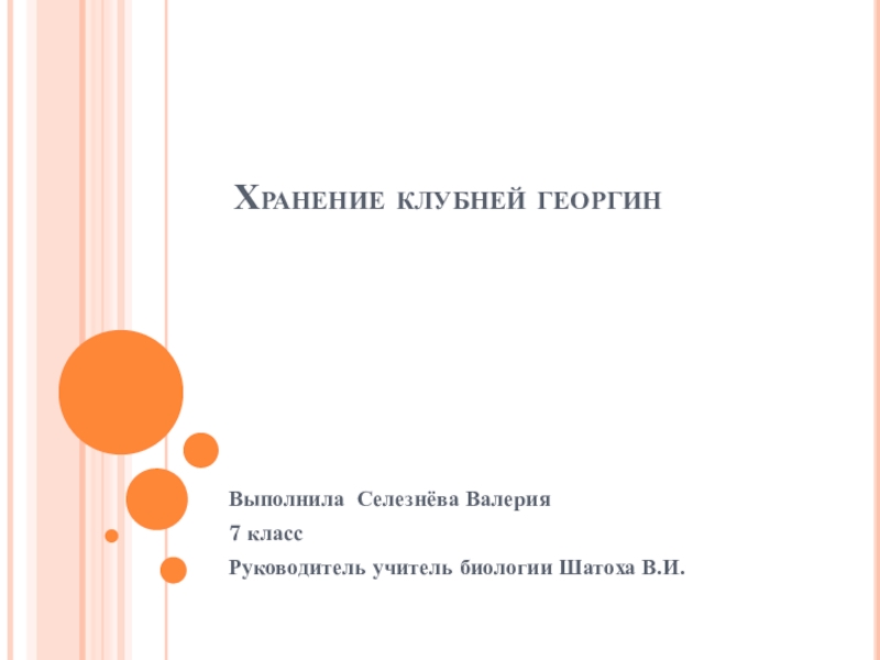 Хранение клубней георгинВыполнила Селезнёва Валерия7 классРуководитель учитель биологии Шатоха В.И.