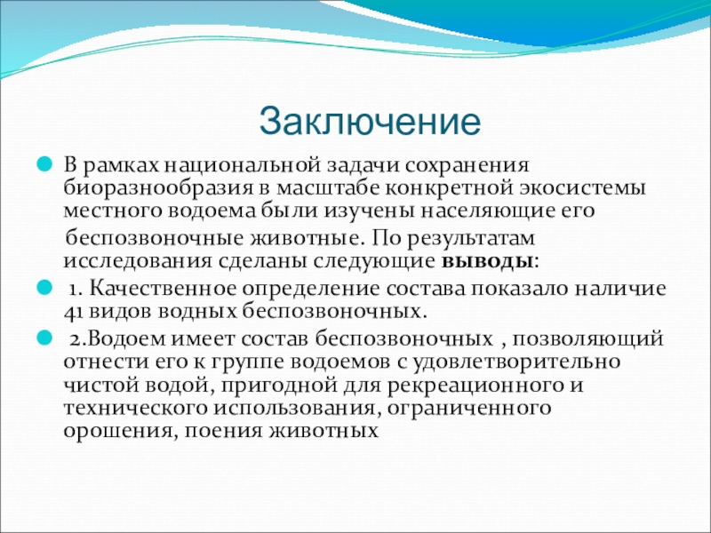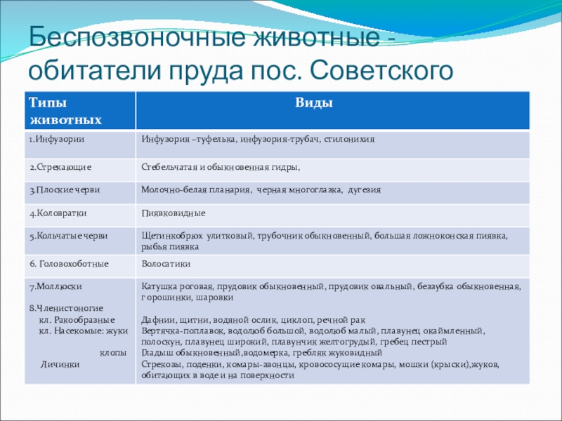беспозвоночные животные. По результатам исследования сделаны следующие выводы: