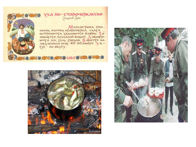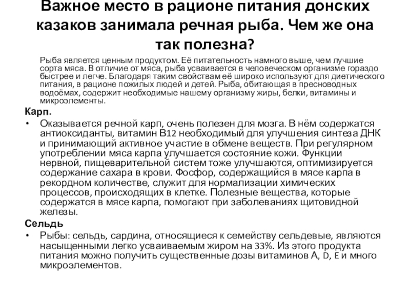 Слайд 13Важное место в рационе питания донских казаков занимала речная рыба. Чем